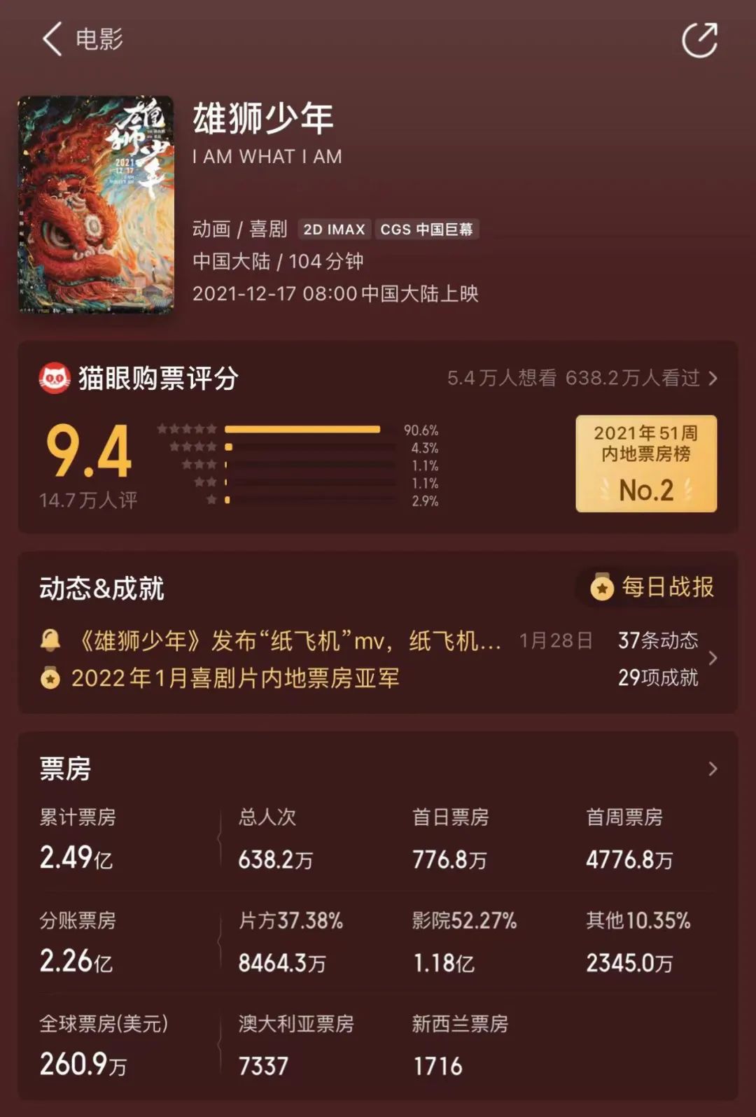 就像院线电影也要通过发行来争夺影院排片率,在大多数情况下,站在劣势地位的非头部项目只有依靠足够优异的内容品质才有可能逆袭成功。但即便如此,口碑优异的《雄狮少年》也没能成为市场黑马。对于网络电影来说,又何尝不是这个道理。