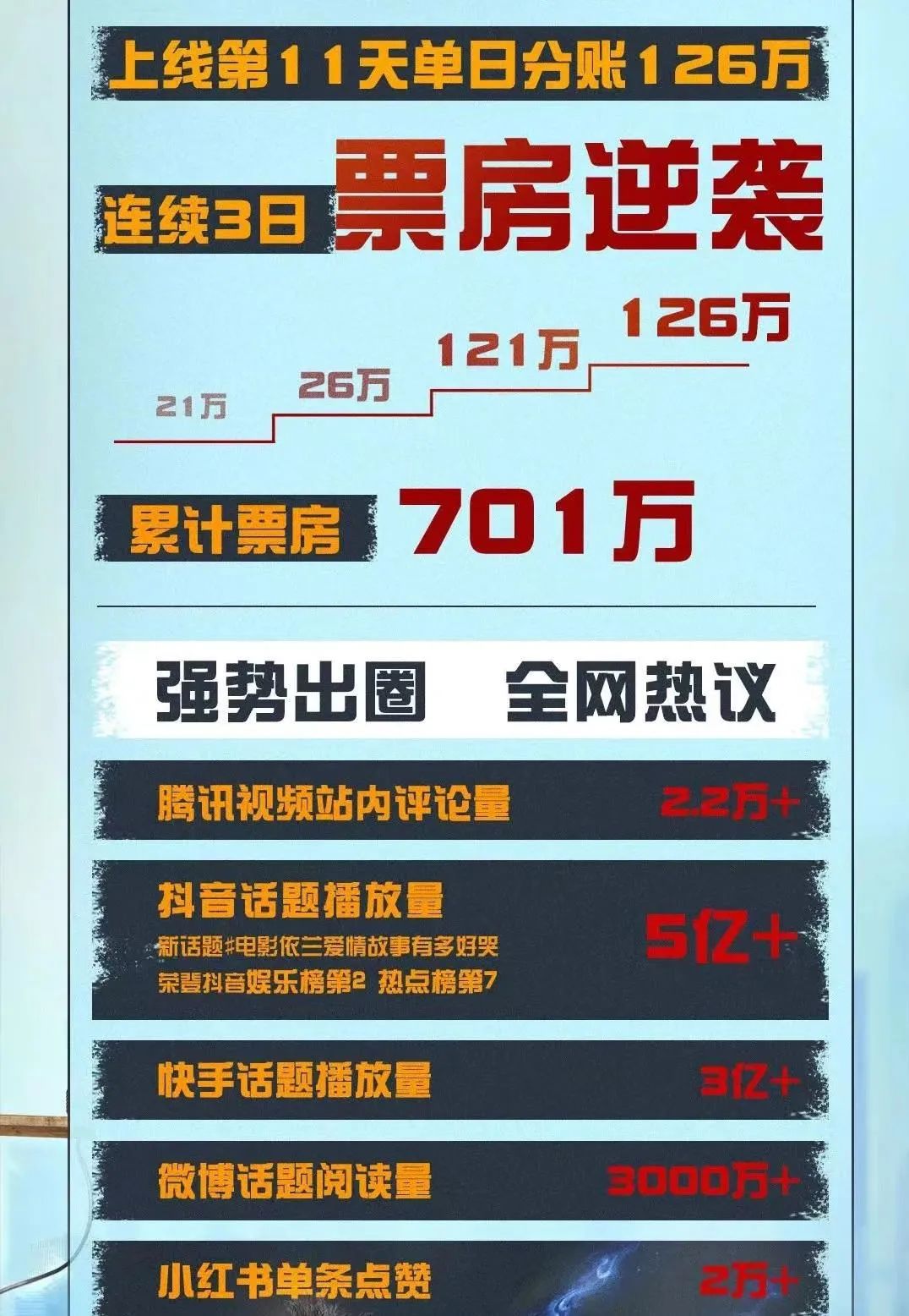 在上线后几天创造票房逆跌“奇迹”的《依兰爱情故事》,则是网络电影市场上为数不多凭借情绪营销脱颖而出的项目。在营销团队的助力下,让这部主打情感卖点的网络电影在抖音、快手两大短视频平台获得了较大声量的传播,带来了非常积极的热度反哺。
