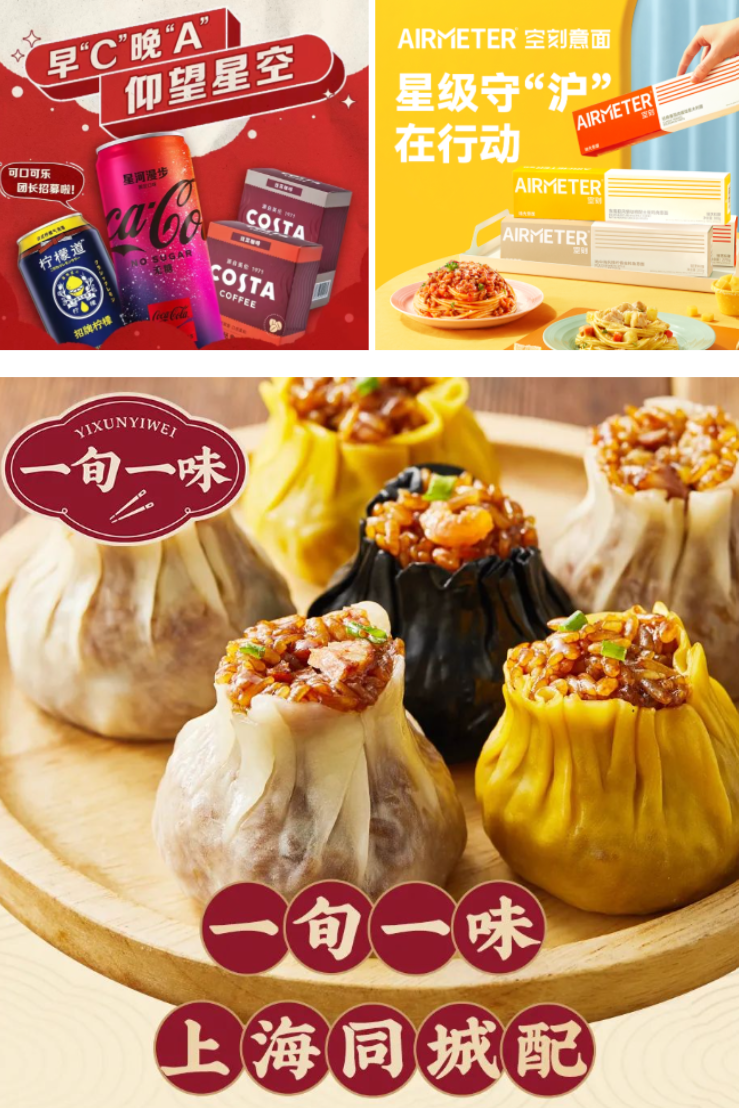 食品品牌开展团购业务;图片来源:可口可乐、空刻、一旬一味(顺时针方向)
