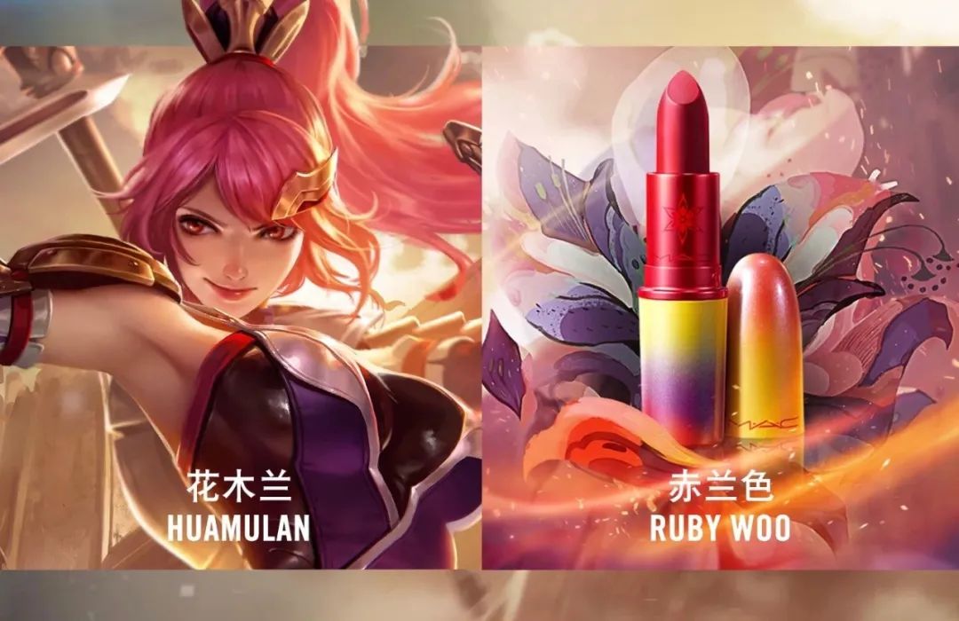 2019年前后,《王者荣耀》与MAC的合作彻底让王者的联名产品出圈。当时火箭少女刚成团不久,腾讯拉来了火箭少女中的孟美岐、吴宣仪、傅菁、Yamy、赖美云为联名产品做推广,代言阿离色、貂蝉色、露娜色、木兰色、大乔色,大力造势下,多款联名口红一度卖到脱销。