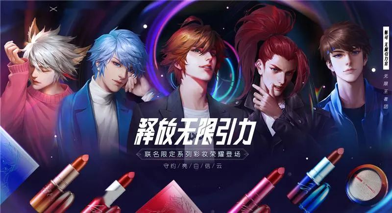 在“男色经济”兴起的当下,MAC在与王者的联名合作中更是将人气男女英雄“一网打尽”。