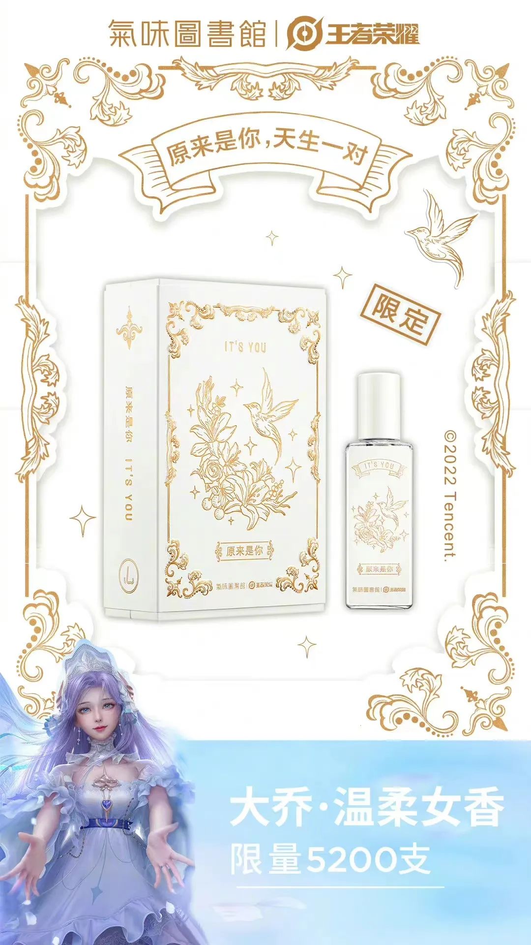 皮肤故事的出现,自然为品牌方带来了更大的发挥空间,这也是大乔孙策皮肤尚未上线便官宣两个联名合作的主因。I Do在联名产品官宣时打出了“梦幻爱情,即将开局”的宣传语,而气味图书馆推出的限定联名香水的官宣文案则是“原来是你,天生一对”,这些都与皮肤故事有极高的关联度。