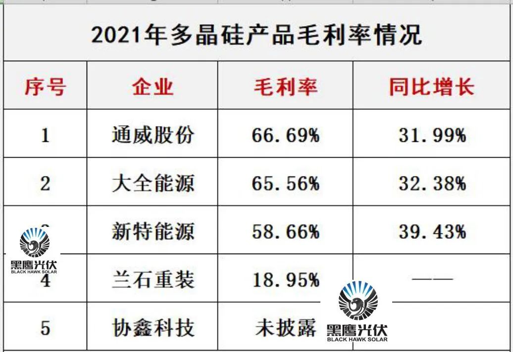 如下表,硅料环节无疑是最大赢家,2021财年硅料整体毛利率达到64.13%,同比增长了一倍;此外,光伏玻璃、金刚线、生产设备、逆变器等环节均保持不错的毛利率。整体来看,除了多晶硅、金刚线和设备环节,光伏供应链其他10个环节的毛利率几乎全线下滑。