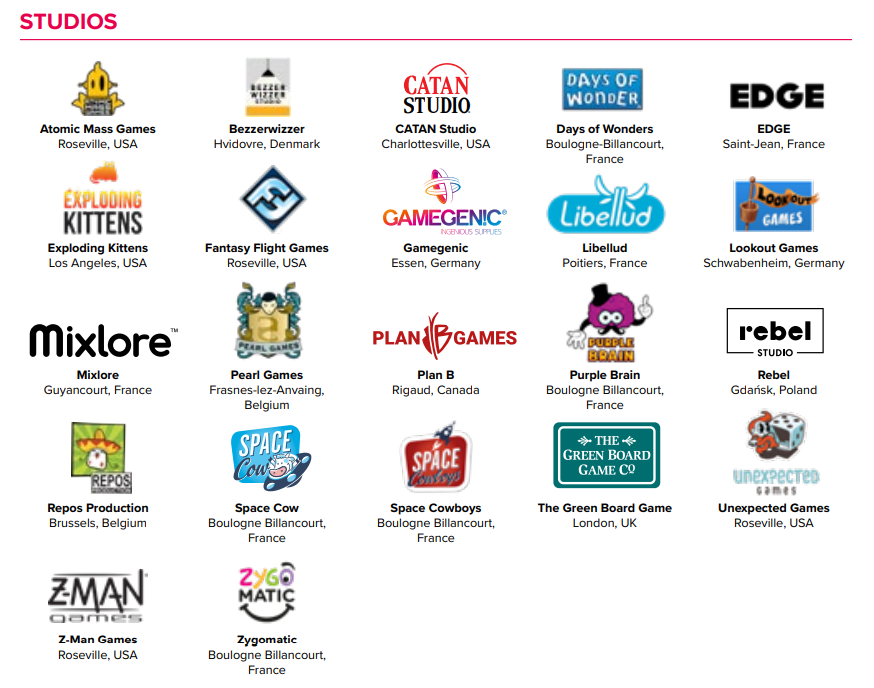 Asmodee旗下22个工作室