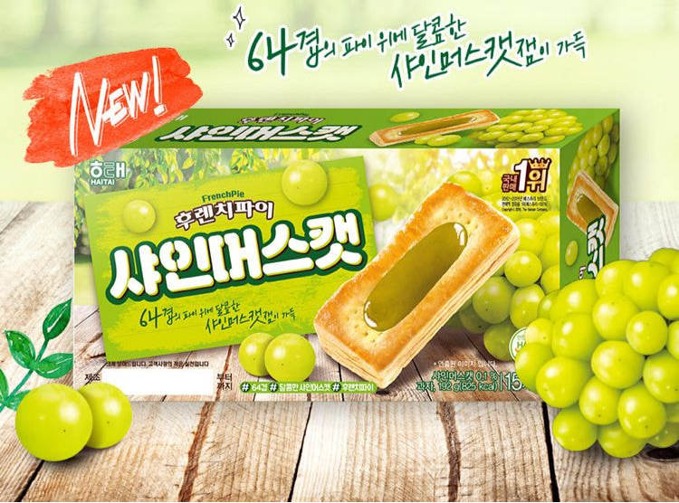 烘焙品类中,韩国休闲零食品牌海太将青提果酱与经典法式点心相结合,在2021年6月推出一款青提果酱法式点心派。青提果酱由应季青提带皮压榨制成,充分保留原有果香和甜度。层层酥脆的64层经典法式点心,搭配香甜浓郁果酱,解锁味蕾极致享受,非常适合下午茶、朋友小聚等休闲时刻食用。产品一经上市,便受到众多消费者的青睐,美食博主等KOL也纷纷社交媒体上种草分享。