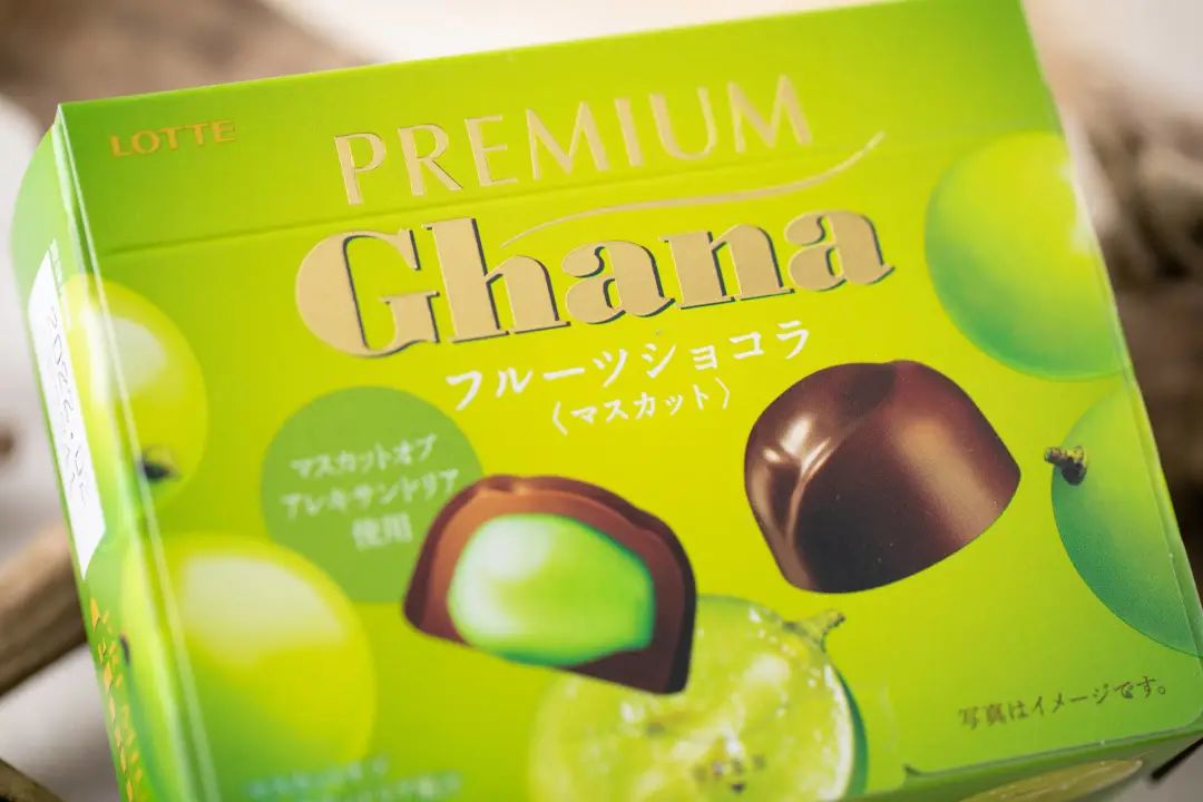 糖果&巧克力品类中,乐天以时令青提作为巧克力果酱内芯,在2021年11月推出青提夹心加纳巧克力(ロッテ プレミアムガーナ フルーツショコラ マスカット)。纯天然原料制成的香浓馥郁的巧克力,包裹精选青提制成新鲜果酱,细腻丝滑,甘醇美味。非常适合搭配绿茶、红茶等热饮食用,为消费者带来极致下午茶体验。