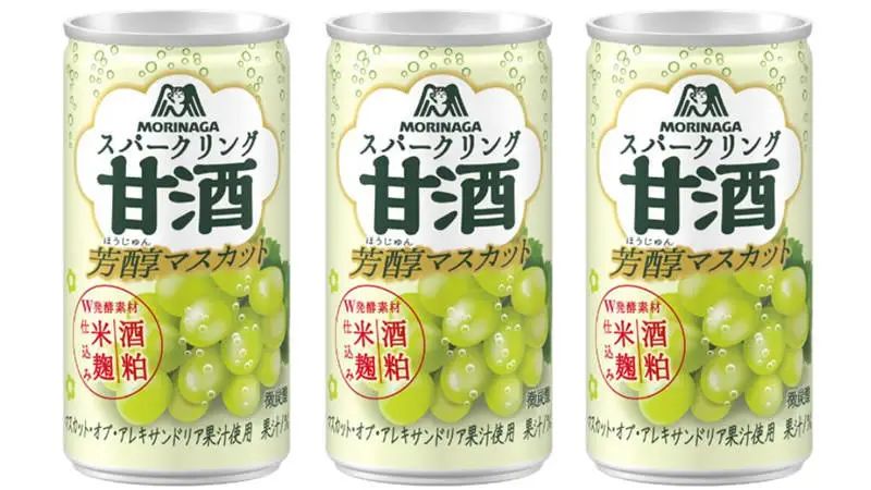 饮料品类中,森永将青提与米酒和碳酸相结合,在2021年9月推出一款青提风味碳酸米酒(スパークリング甘酒 芳醇マスカット)。米酒采用精选酒糟发酵制成,秋季时令青提的加入使得果味与酒味相得益彰,碳酸的加持赋予产品丰富味觉体验。