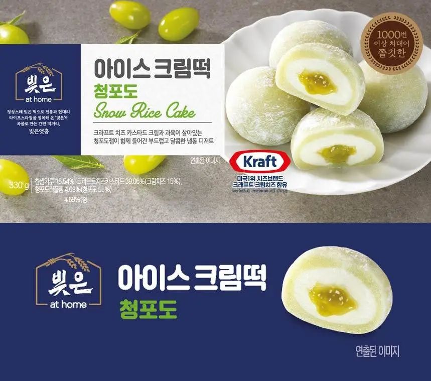 韩国品牌SPC Samlip将现代冷冻甜点概念植入传统年糕,在2021年夏季为消费者带来一款青提冰淇淋年糕( )。采用特有的三重填充技术,将新鲜的青提果酱和卡夫奶油芝士、卡仕达酱完美包裹与年糕中,一口纵享三种口味,迎合当下消费趋势,拉近了传统食品与年轻消费者的距离。