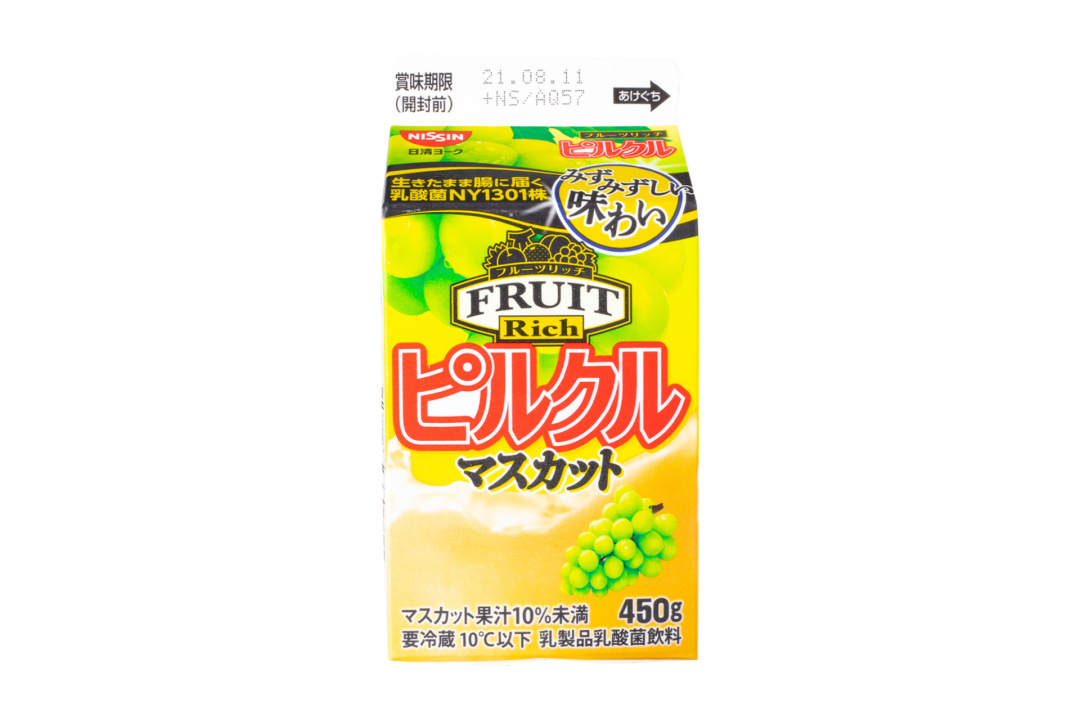日清将口感清爽的青提果汁加入乳酸菌饮料,在2021年6月推出一款青提风味乳酸菌饮料(ヨーク フルーツリッチピルクル マスカット)。新鲜青提制成的青提果汁清甜爽口,冷藏后非常适合炎热的夏季饮用。特别添加NY 1301活性乳酸菌,有助于维持肠道内菌群平衡,抑制有害菌增殖,满足消费者日益多元的消费需求。