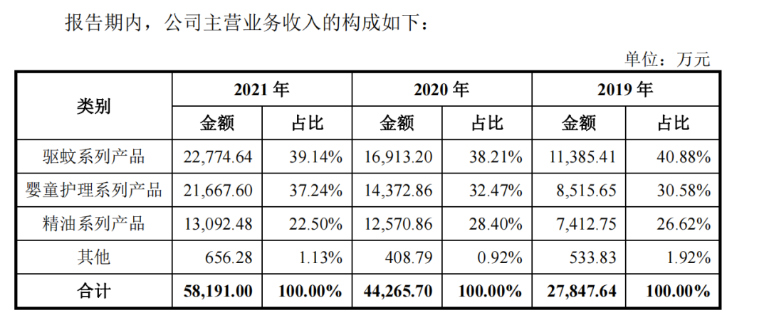 招股书显示,自2006年成立以来,润本深耕家居个人生活领域,目前已形成婴童护理产品、精油产品、驱蚊产品三大核心产品系列。