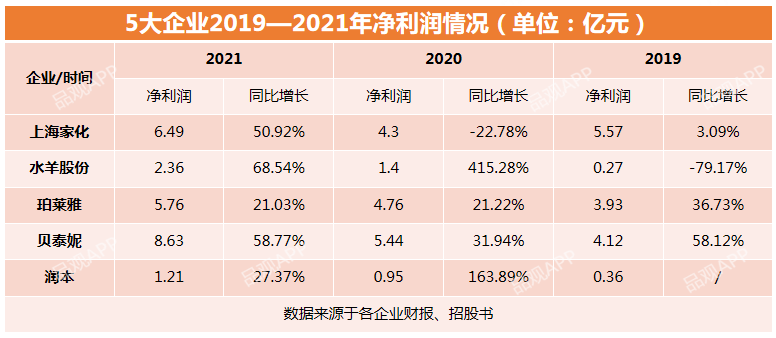 同样,在净利润方面,2020年,其163.89%的增速远超上海家化、珀莱雅、贝泰妮等。不过,2021年,润本这一项指标的增速放缓,至27.37%,仅高过珀莱雅。