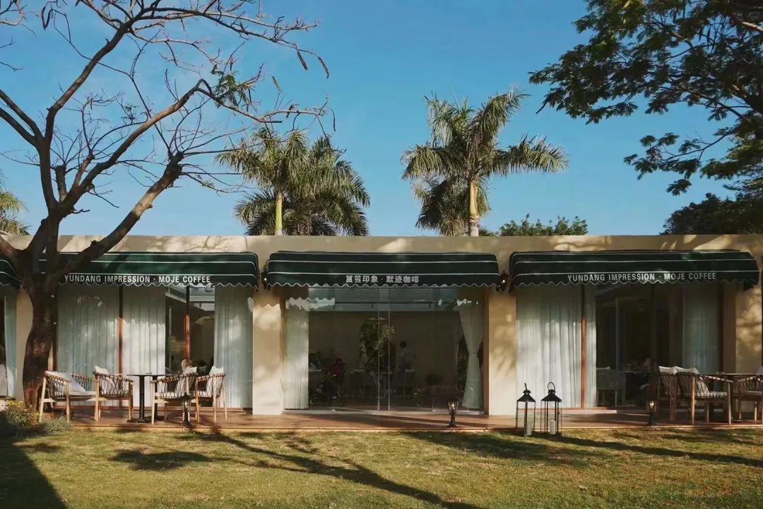 默迹白鹭洲店和磐基名品中心店,整体是偏奶油黄和暖白的法式度假风,被称为“城市的莫奈花园”;另一个银白都市风,明亮清新。