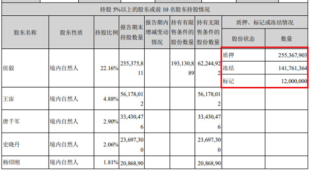 新纶新材2021年年报显示,截止2021年12月31日,公司控股股东及实际控制人侯毅持有2.55亿股,占公司总股本的22.16%,累计质押的股份占其所持股份总数的99.99%,且部分质押贷款已经超过了质押期限。侯毅与质权人协商贷款续期事宜。