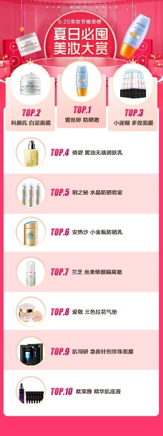 为满足夏日囤货需求,唯品会推出“夏日必囤美妆大赏”,为消费者们奉上一份今年夏天最具参考价值的购物指导。上榜的夏日单品均是根据产品在平台的销量及增速、用户反馈和买手推荐等多维度数据统计得出,涵盖防晒、底妆、彩妆、面部护理、身体护理等品类,一张榜单搞定夏日所有变美好物。