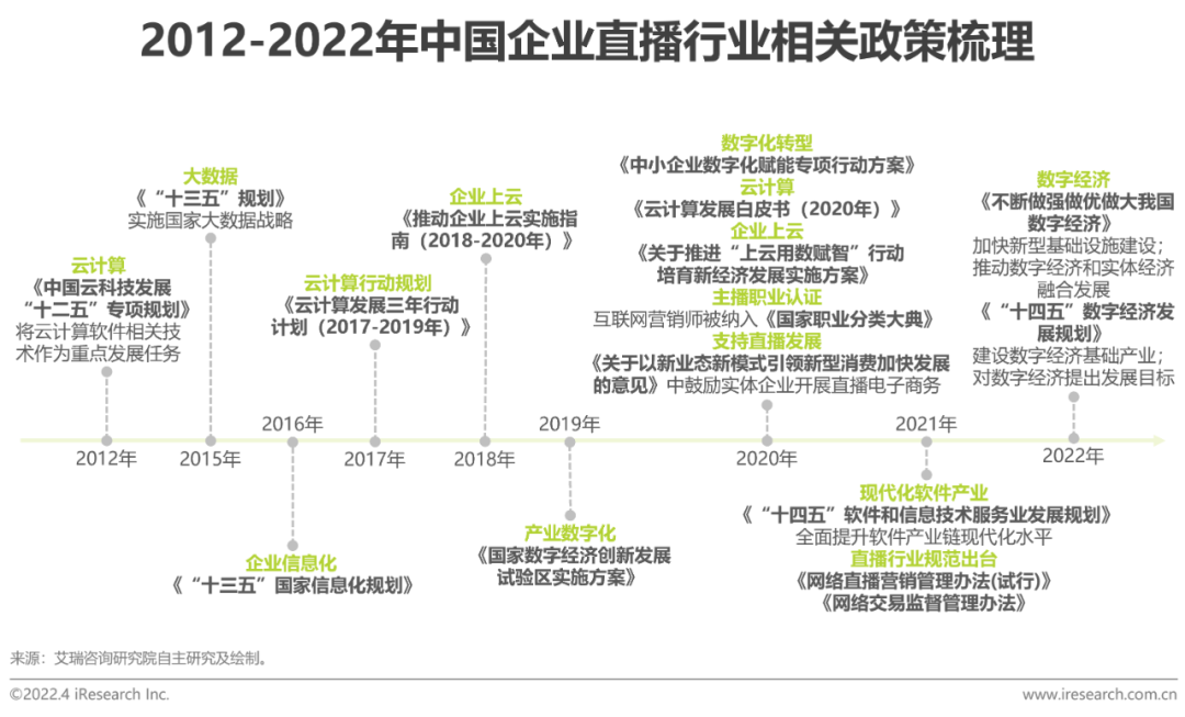 相关政策鼓励企业数字化转型,推动企业直播行业发展