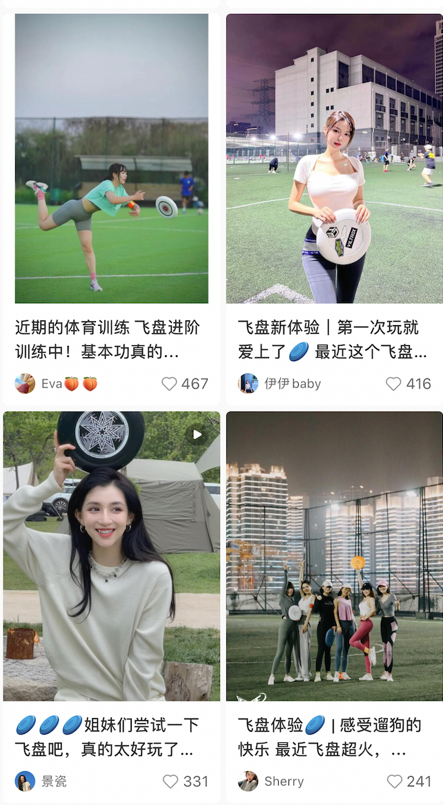 尽管更关注运动本身的“飞盘原教旨主义者”常常不屑于场上热衷拗造型摆拍的飞盘玩家,但不可否认,后者在社交媒体平台上的分享,对飞盘破圈起了关键作用。