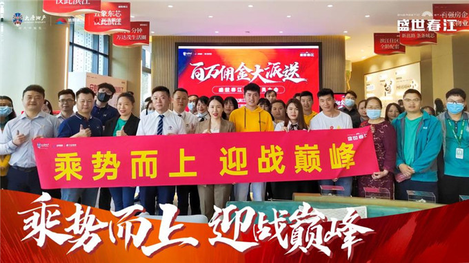 2022年5月24日,盛世春江“百万佣金大派送——渠道动员大会”火热举行。销雄聚首,掘金共赢。超百名渠道经纪人齐聚一堂,启雄心、抒壮志,展现营销人的奋斗光芒。