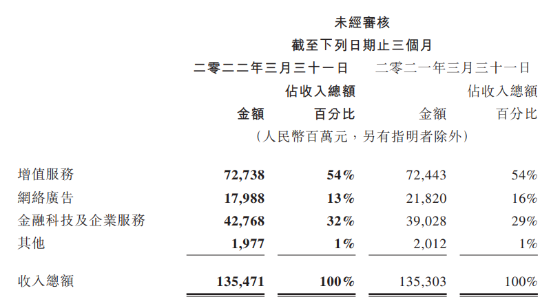 2021年第一季度财报可以看到,金融科技化及企业服务的收入依然保持增长,同时占营收的百分比已经超过了30%。而2021年全年,金融科技及企业服务的营收增长率为31%,成为除以游戏为代表的增值服务之外增长率最高的业务。