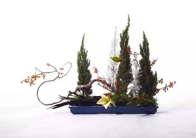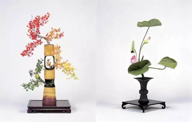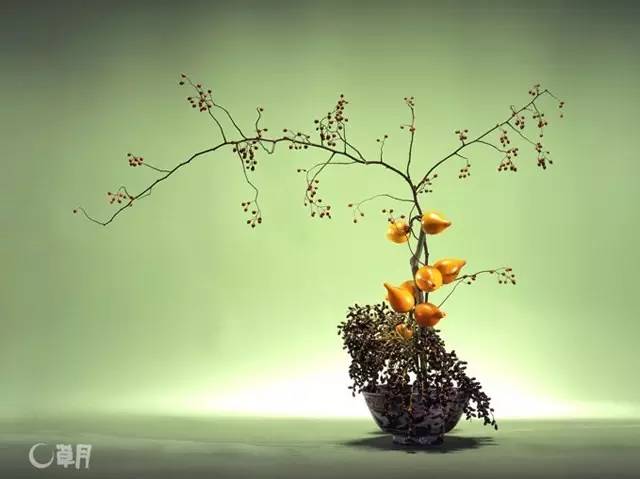 同茶道一样,花道以花型喻自然「天、地、人」,品格「真、行、草」。