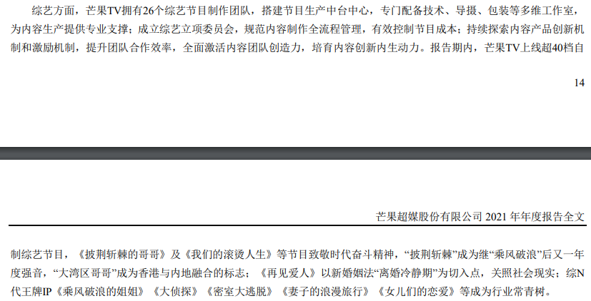 另一方面,综N代基本霸榜了芒果TV的热播综艺,在财报中,芒果超媒也反复提到了综N代之于公司的重要性,已然构成了公司业务基本盘。