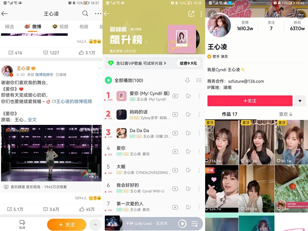 另一方面,王心凌的红利不止属于芒果TV,微博上每天至少被占据10个热搜,平台上涉及她拍过的戏唱过的歌,以及节目初舞台的播放量也达到了1945万次,抖音、小红书、QQ音乐、网易云等平台也各自赚到了王心凌的流量。
