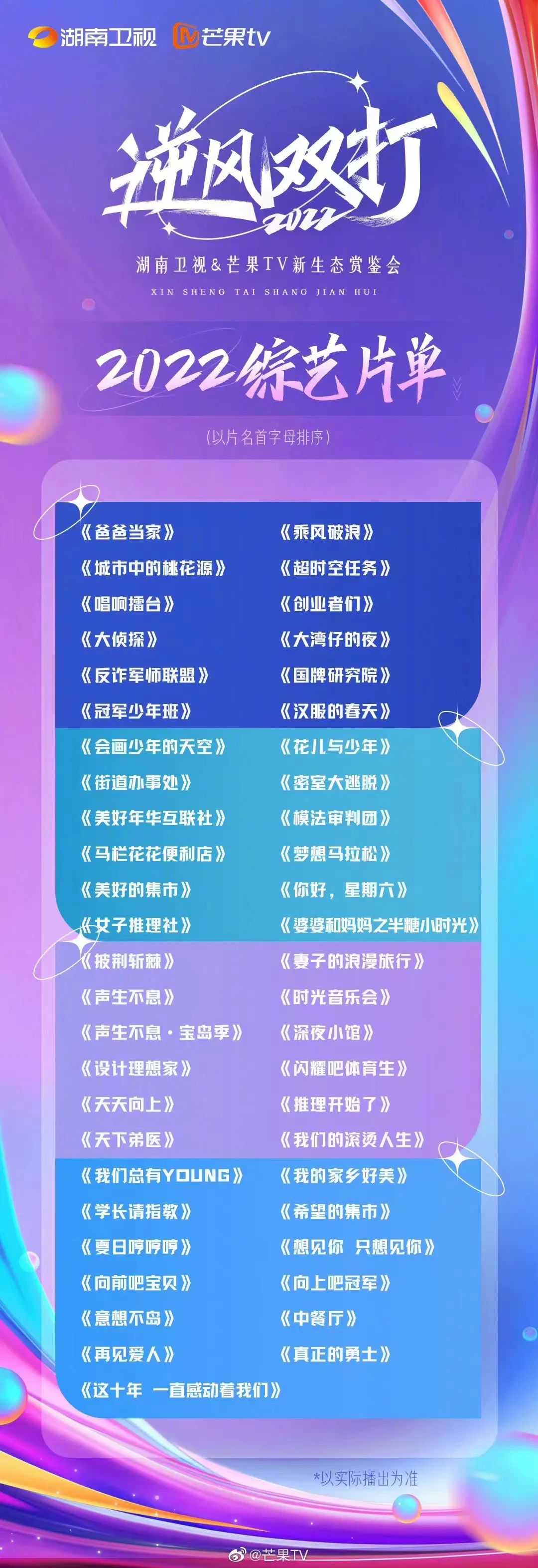 在5月18日芒果TV和湖南卫视共同公布的2022新片单中,像是《汉服的春天》、《会画少年的天空》、《闪耀吧体育生》等垂直领域综艺的数量逐渐多了起来,证明了芒果也在寻求创新。