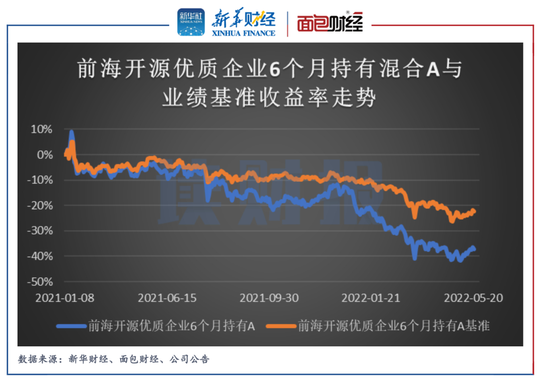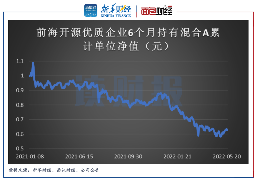 前海开源基金旗下明星次新基金前海开源优质企业6个月持有混合正在经历深度回撤。截至2022年5月23日,该基金的单位净值已跌至0.65元以下,与业绩基准的差距逐步拉大,成立至今累计跑输基准近15个百分点。