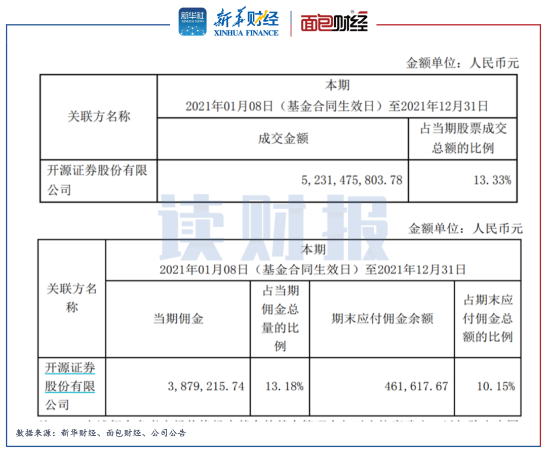 另外,基金2021年年报中提及,前海开源优质企业6个月持有混合约52.31亿元的股票成交通过关联方开源证券交易单元进行,占当期股票成交总额的13.33%;当期应支付给开源证券的佣金达到387.79万元。公开资料显示,开源证券为前海开源四大股东之一,持有公司25%股份。