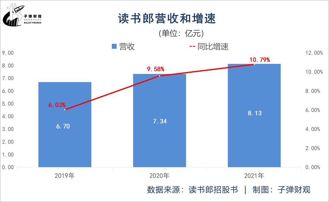 当然,读书郎的部分业绩表现还是值得肯定的。就拿营收来说,根据读书郎招股书,2021年该公司的营收为8.13亿元,较上年同期的7.34亿元增长10.79%。