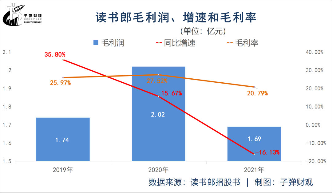除此之外,读书郎的毛利润也在滑坡。根据读书郎招股书,2021年该公司的毛利润为1.69亿元,较上年同期的2.02亿元下降16.13%。