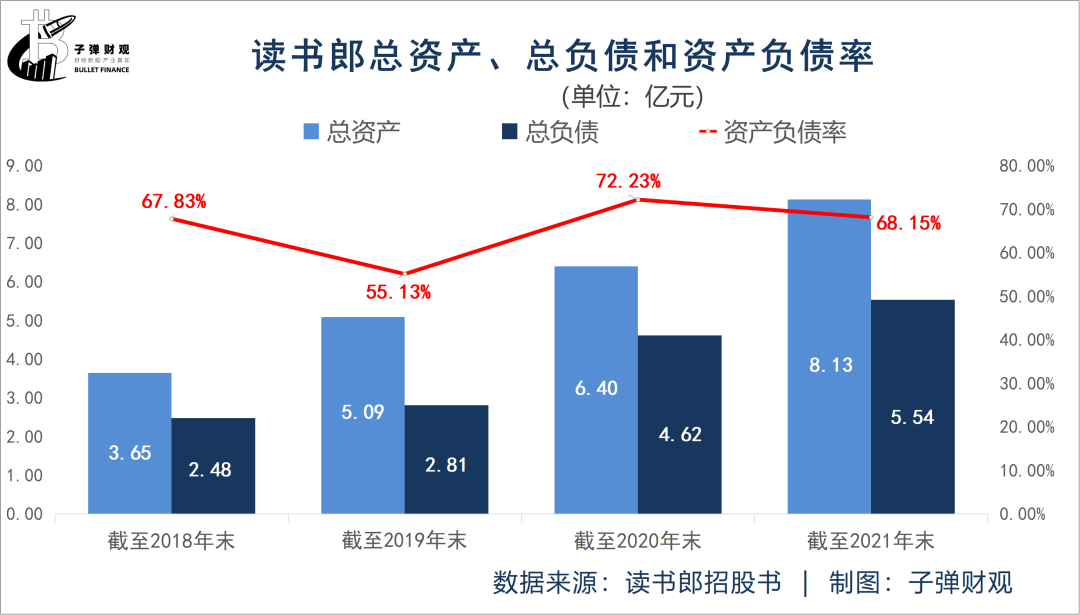 值得注意的是,资产负债率过高,意味着企业偿债能力较弱,存在较大的财务风险。所以,“如何降低资产负债率”成为读书郎不得不面对和解决的一道难题。