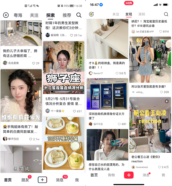 左侧为抖音「探索」,右侧为小红书。
