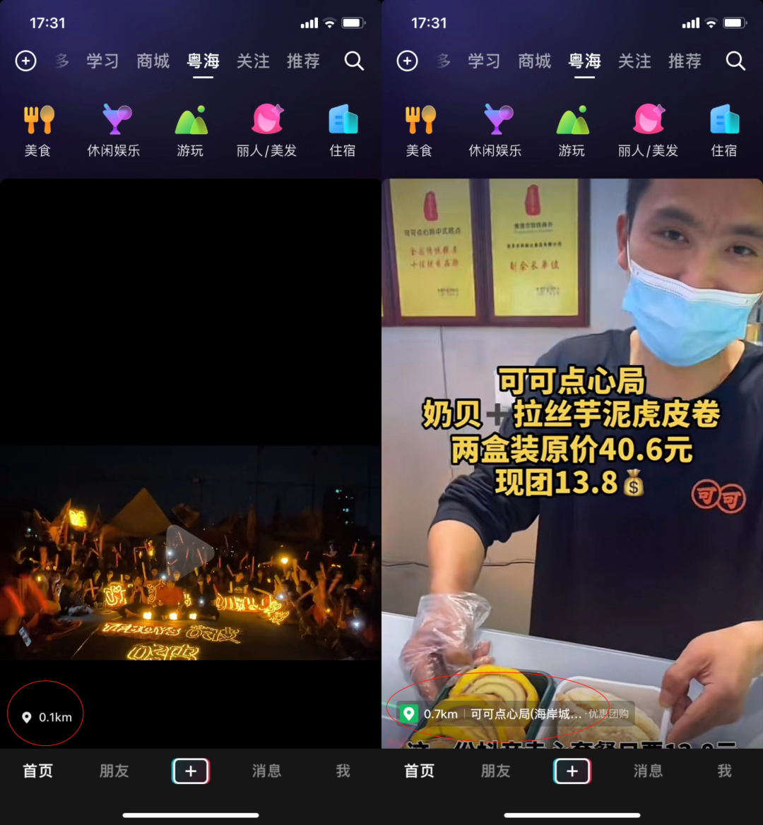 「同城」是上线已久的“老板块”,包括美食、休闲娱乐、游玩、丽人美发、住宿等。推荐的主要内容以团购为主,在「同城」中布局的,是抖音本地生活业务。