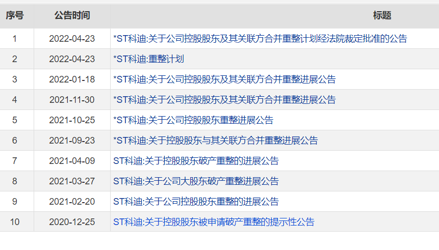 2020年,商丘市中级人民法院受理科迪集团破产重整申请,2021年9月被法院裁定进入重整程序。时至2022年4月22日科迪集团等十家公司合并重整计划终于公之于众。