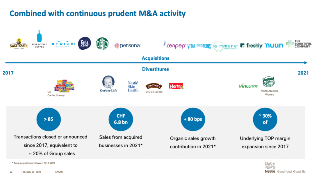 雀巢2017年以来的部分并购剥离记录(图片来源:公司资料)