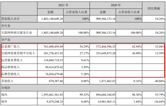 第一是信息推广收入,向用户推荐电商或品牌的产品,平台赚一笔导购佣金或是广告费。2021年,什么值得买信息推广收入为76169.85万元,同比增长为33.06%,占比为54.29%。