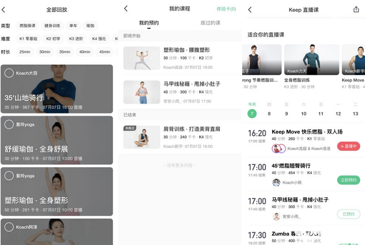 1月底,超级猩猩首次直播实时在线人数达17万。2月中旬,抖音、快手等平台联合Shape、乐刻等先后上线宅家运动系列,排好直播课表,引导年轻人把客厅变成健身房。2020年下半年,Keep推出直播业务,覆盖瑜伽、训练、单车等多个品类,截至2021年,Keep提供了超过1.3万节直播课,直播课用户数突破1100万。
