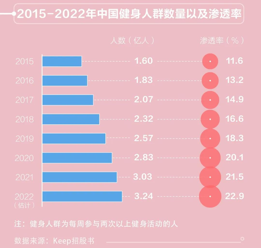 灼识咨询报告显示,2021年中国的健身人群为3亿,居世界首位,且这个数字在2026年有望达到4.2亿。与此同时,2021年中国健身人群的平均年支出为2596元,远低于美国的14268元。这意味着,归属于线上健身的蛋糕也不容小觑。