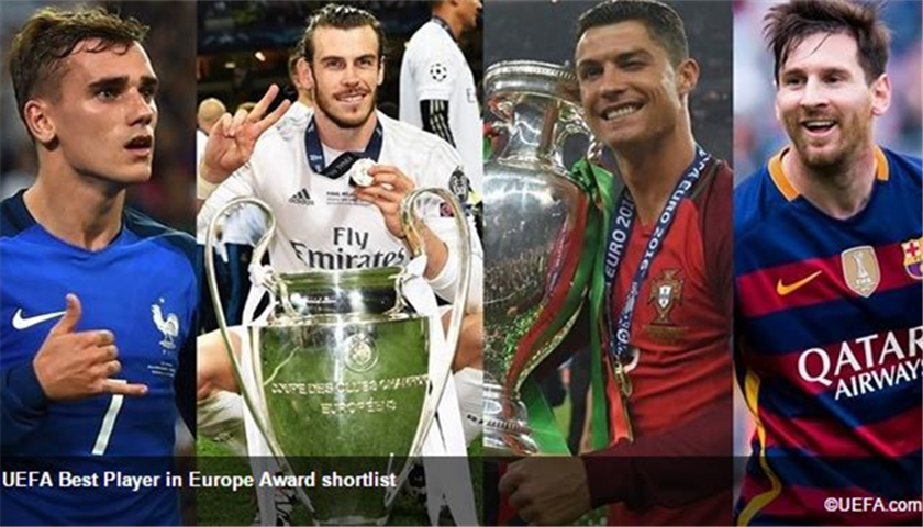 7月18日,欧足联官方公布了入围最佳球员的十位候选人名单。这份榜单由分别率领皇家马德里和葡萄牙捧起欧冠和欧洲杯双料冠军的C罗领衔,而上赛季欧洲最佳球员梅西以及欧洲金靴奖得主苏亚雷斯一同入围。