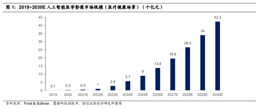 据弗若斯特沙利文数据显示,预计2030年人工智能医学影像市场规模(医疗健康场景)将达423亿元,年复合增长率(CAGR)超过60%。