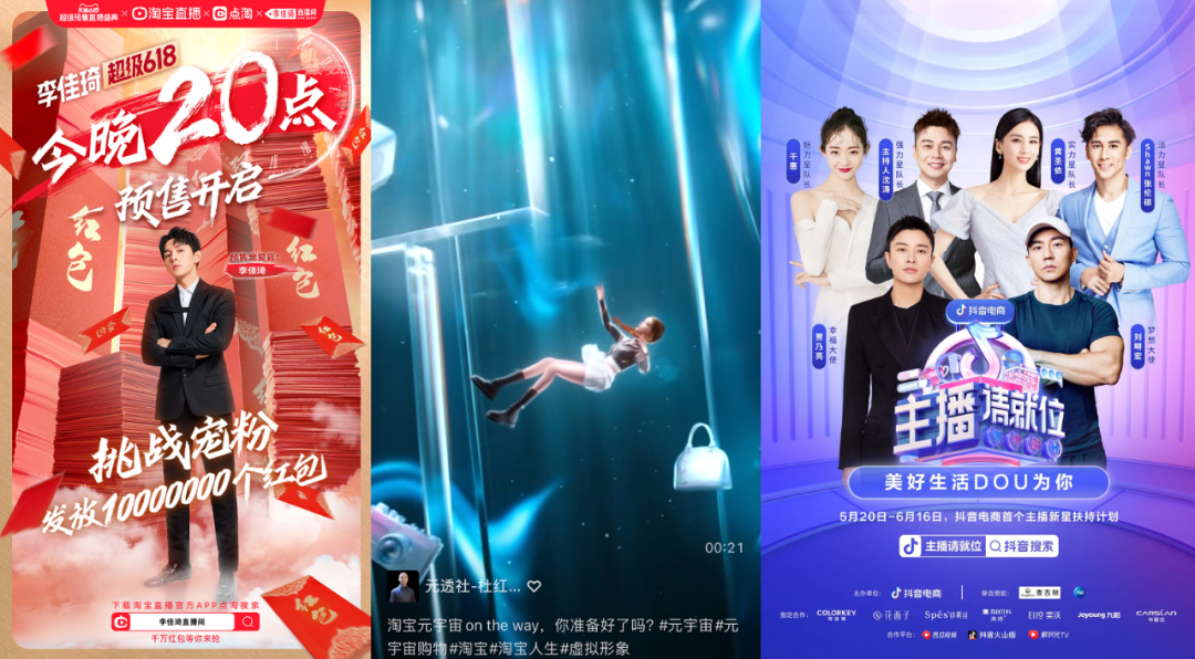 而于消费者来说,今年提前开跑的618在舆论场上声量甚微,但讲真,折扣力度和潜在爆点真的不小。流量最大的仍是“独苗”李佳琦的超级618直播,各平台“佳琦红黑榜”的美妆安利视频已成刷屏之势;据传今年淘宝拟筹备元宇宙项目,噱头满满的“元宇宙购物”玩法极具出圈潜质;抖音则首推“主播新星扶持计划”《618主播请就位》,顶流主播刘畊宏、贾乃亮的加盟缔造了618明星带货界的天花板。