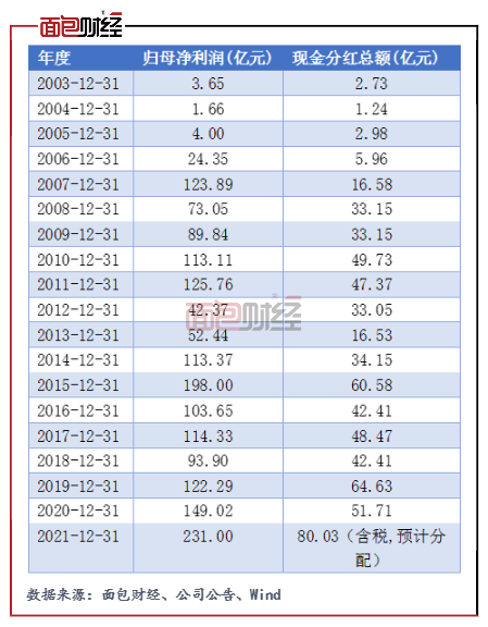 资料显示,自A股上市以来,中信证券逐年分配现金红利,2003年至2021年,公司已分配和待分配的现金红利合计约为666.86亿元,对应期间累计归母净利润为1779.68亿元,折算此19年间的分红比例约为37.47%,分红比例或较高。