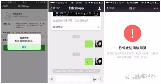 微信转发太快,就像龙卷风,当小编正在默默羡慕嫉妒他的暴风吸粉时,柏拉图APP却被封号了!