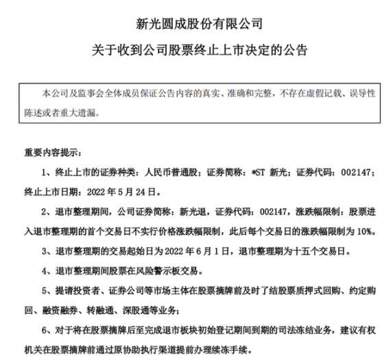 5月24日,*ST新光发布公告称,深交所决定终止公司股票上市。而导致*ST新光走到退市的最后一根稻草则是一份“被出具保留意见”的审计报告。