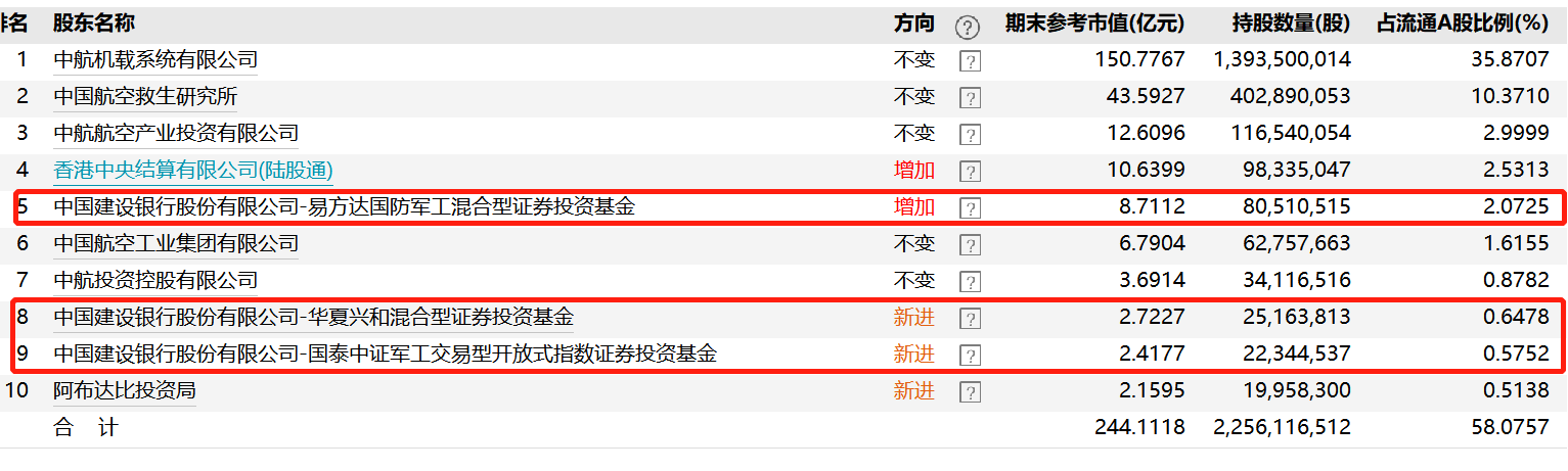 其中,前几只重仓的基金已经位列公示前十大流通股东。以中航机电为例,易方达国防军工、华夏兴和、国泰中证军工ETF分别位列第5、8、9位。其中,易方达国防军工在一季度增持了608.67万股,持股数量达到了8.05亿股;而华夏兴和、国泰中证军工ETF为一季度新进前十大股东。