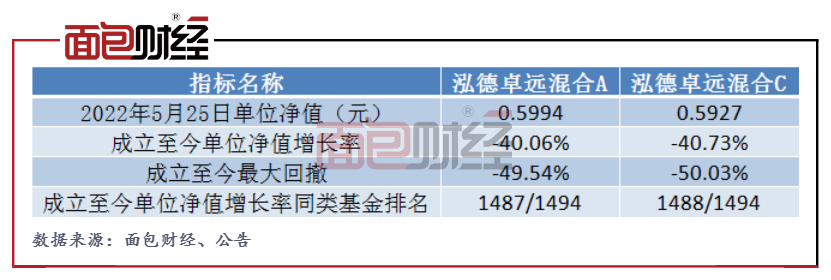 成立后没多久,泓德卓远混合的单位净值便开始下跌。成立至今(截至5月25日,下同),泓德卓远混合A份额单位净值跌幅达40.06%,单位净值不足0.6元,单位净值表现在同类偏股混合型基金产品中排在倒数第8位。同期,同类基金单位净值跌幅仅11.91%。
