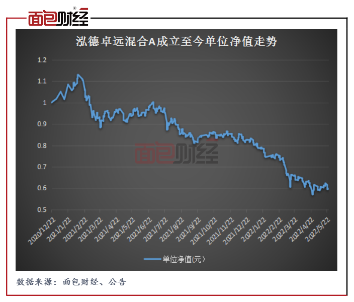 此外,成立至今泓德卓远混合A份额最大回撤达49.5%,2022年4月该基金单位净值最低下探至0.57元,业绩整体表现不佳。