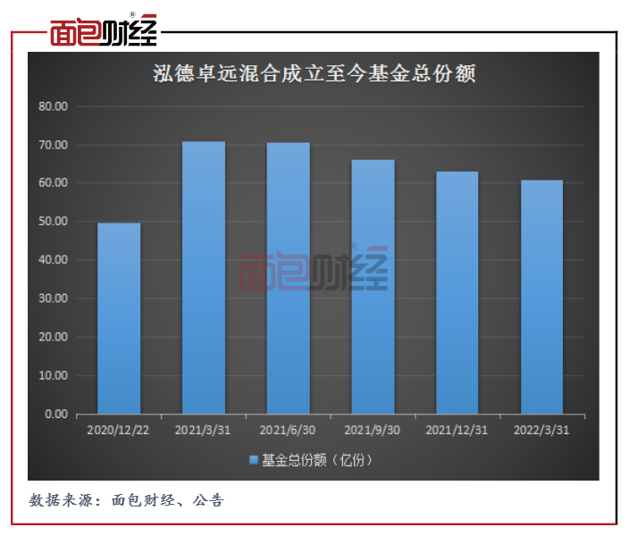 成立时,泓德卓远混合的基金份额合计49.6亿份,并在2021年一季度末增加至70.8亿份,是当时泓德基金旗下规模较大的主动权益类基金产品之一。