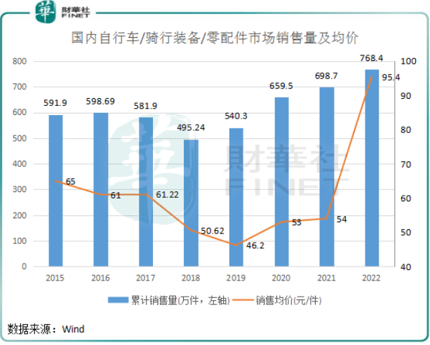 售价方面,今年1-4月自行车及相关产品平均售价大幅飙升,期内达到95.4元/件,同比增长76.7%。