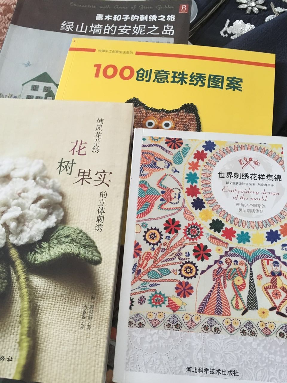 △在张洁工作室里,交谈之余,我忍不住好奇心,拿着几本关于刺绣工艺的书籍翻看起来。
